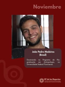 Este espaço reúne trajetórias diversas, experiências etnográficas singulares e diferentes perspectivas teóricas, que têm em comum o interesse em compreender o esporte como um fenômeno social, cultural e político. A partir de seus campos de pesquisa, essas e esses participantes investigam temas como corpo, emoções, gênero, institucionalização, formação, territorialidades e os múltiplos sentidos atribuídos às práticas esportivas em distintos contextos latino-americanos.